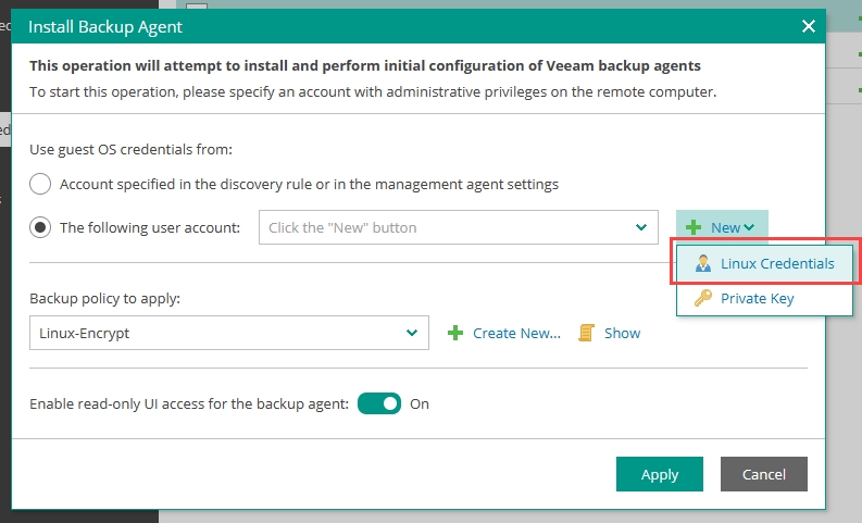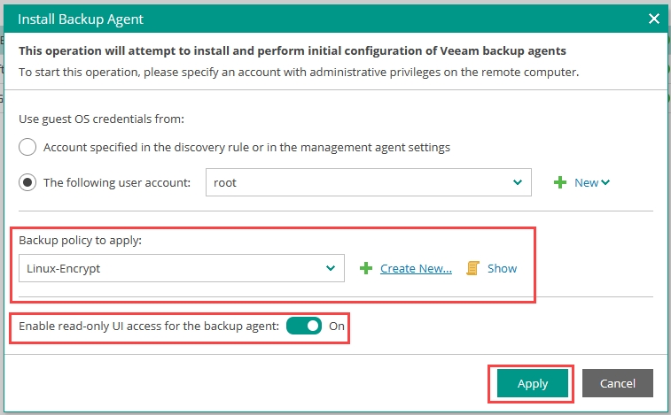 Mặc định, quyền truy cập chỉ đọc được bật cho tất cả các Veeam backup agents. Để tắt chế độ quyền truy cập chỉ đọc cho Veeam backup agents, tắt tùy chọn Enable read-only UI access for the backup agent sang Off.