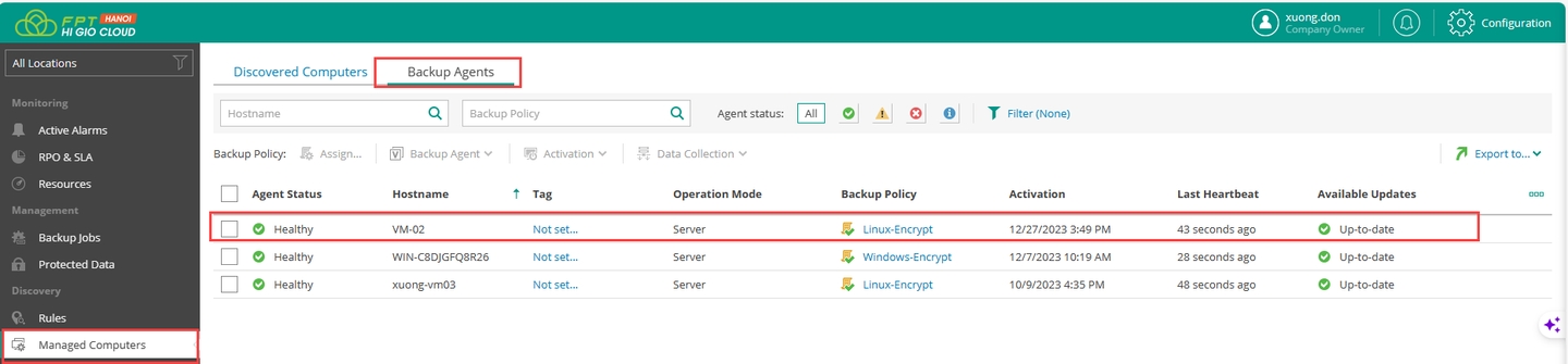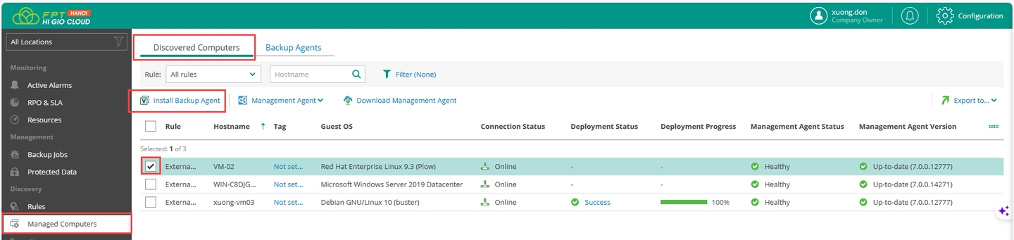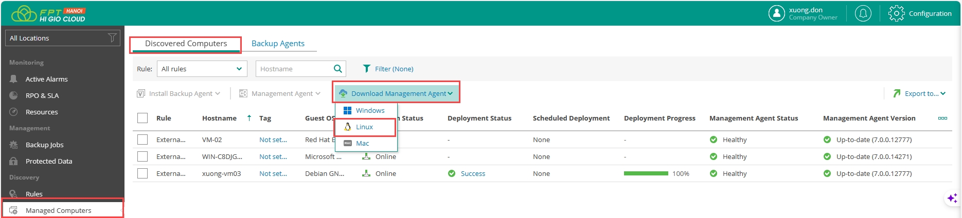 Đăng nhập vào Web UI > Managed Computers > Discovered Computers
