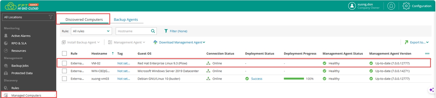 #iptables-saveBước 4: Quay lại Veeam Service Provider Console, máy Linux sẽ hiển thị trong Discovery Computer với trạng thái active.
