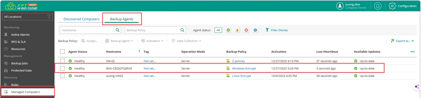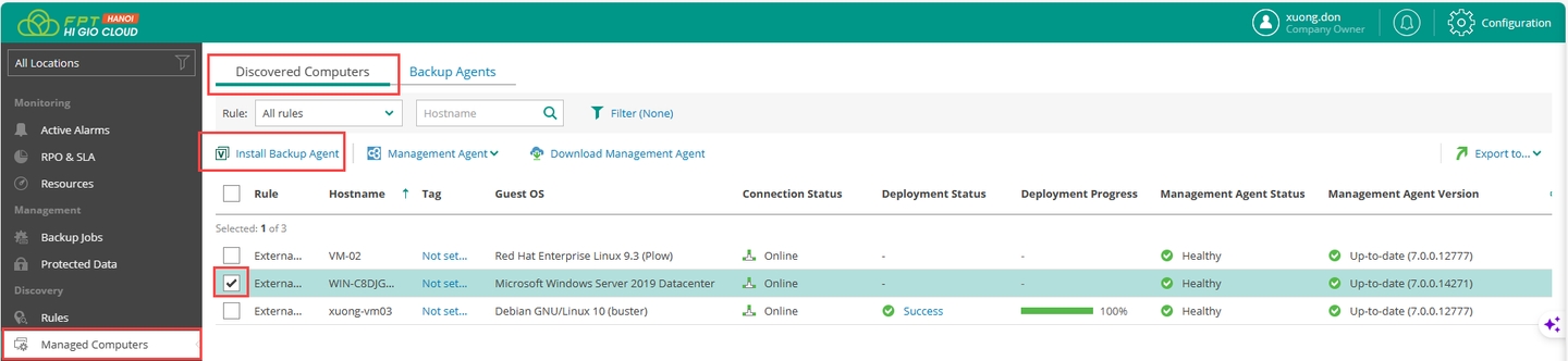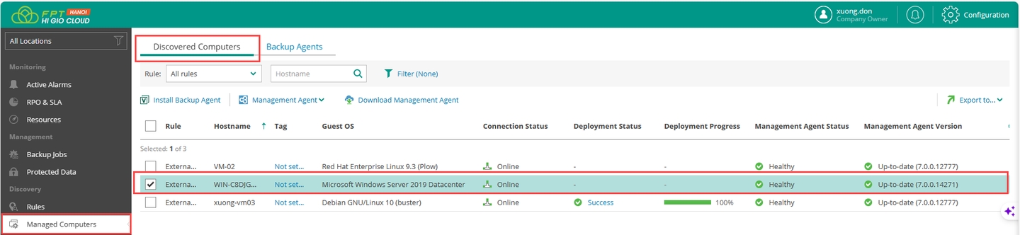 Quay lại Veeam Server Provider Console để máy tính Linux sẽ hiển thị trong "Discovery Computer" với trạng thái "active."