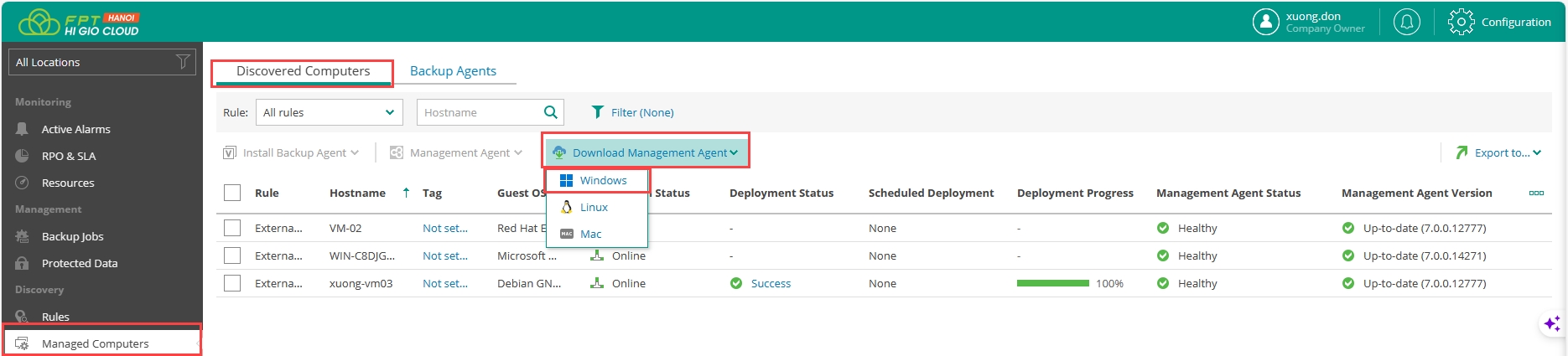 Đăng nhập vào Web UI > Managed Computers > Discovered Computers
