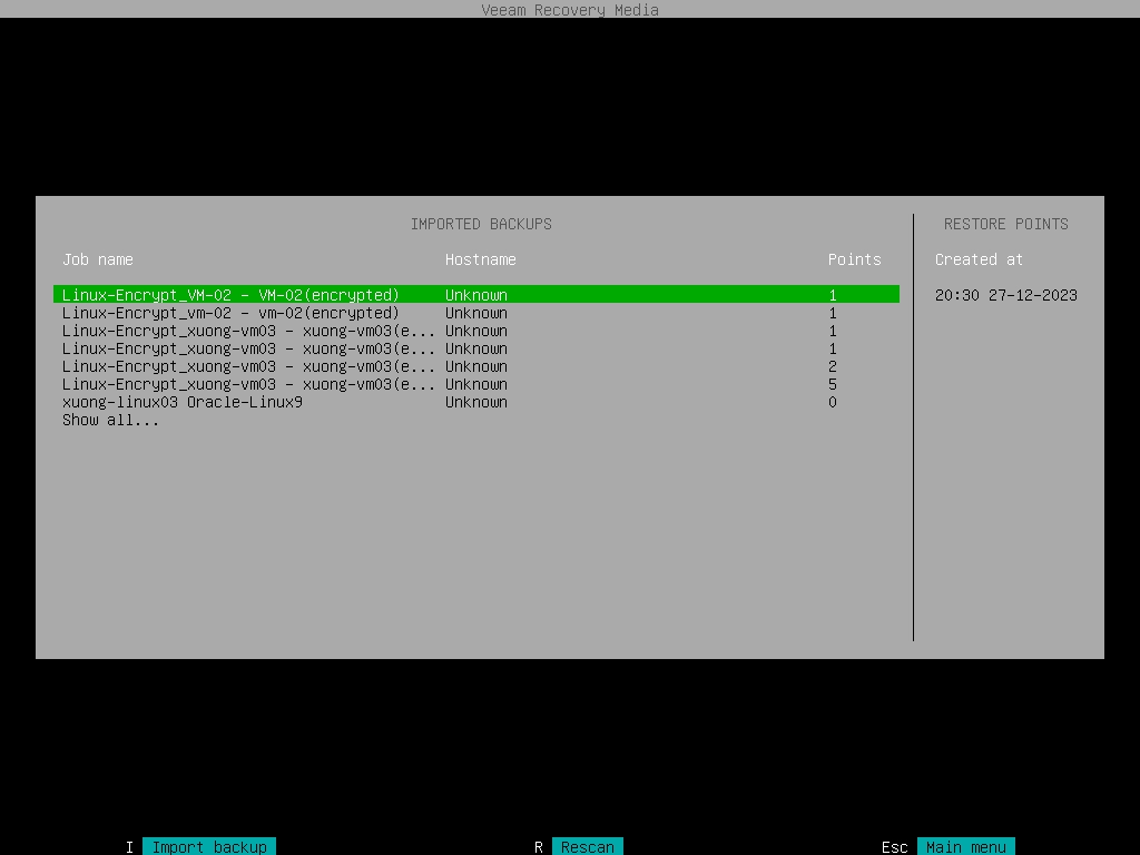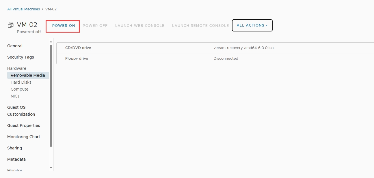 Khởi động VM (POWER ON VM) và chờ để Veeam Recovery Media khởi động.