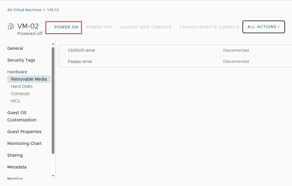 POWER ON lại VM.