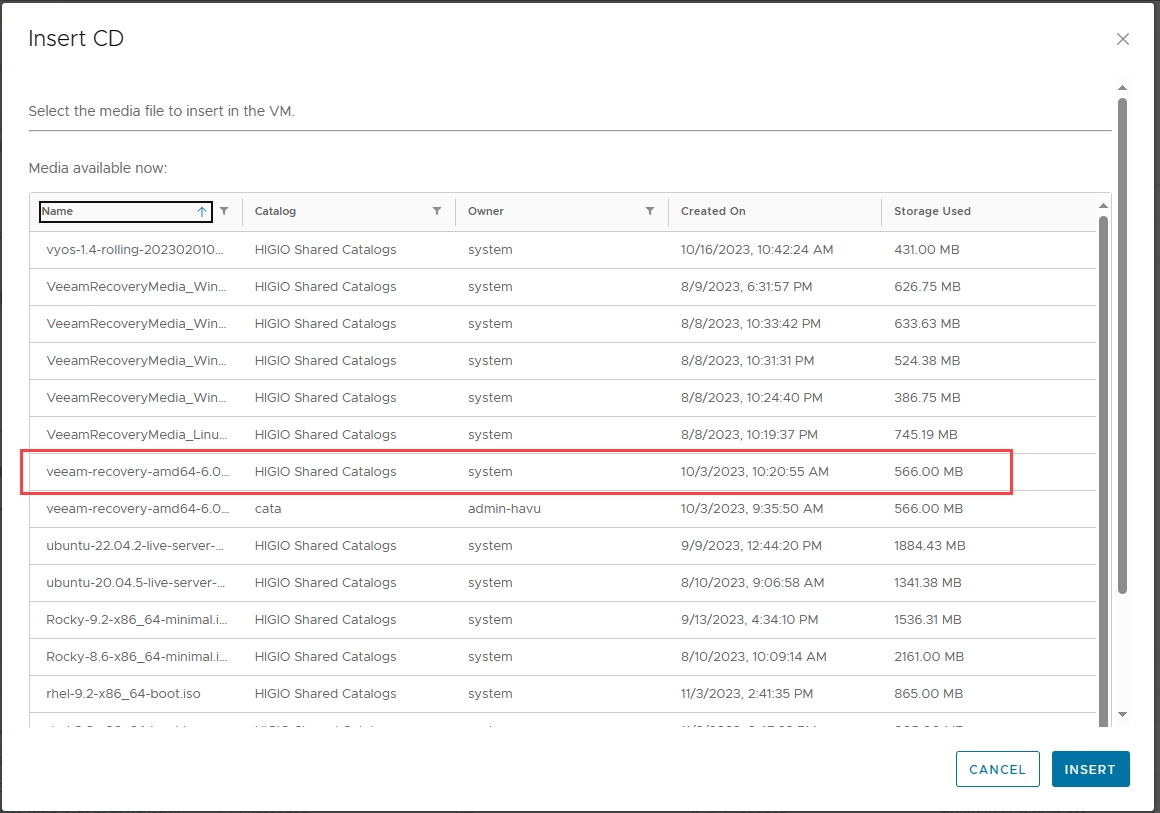 Chọn Veeam Recovery Media (tương ứng với hệ điều hành của bạn) -> Insert