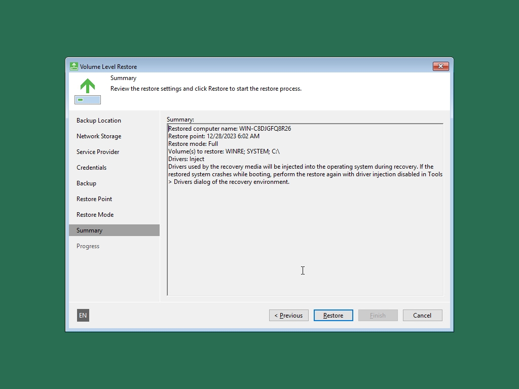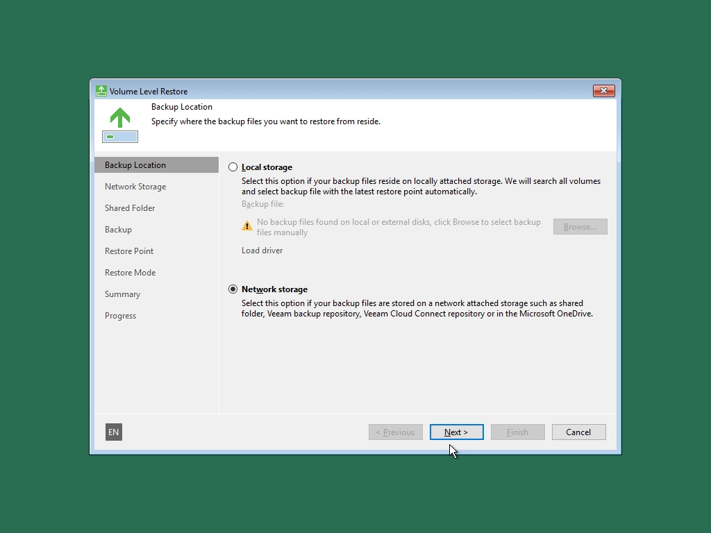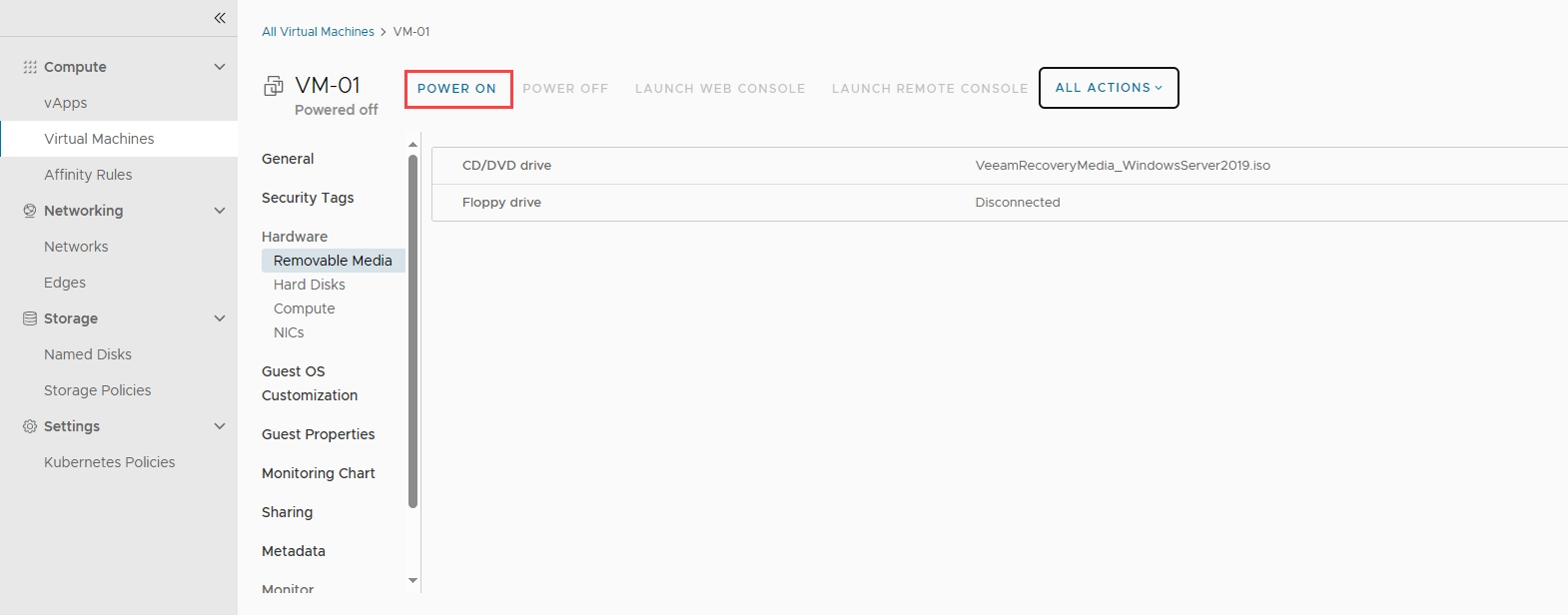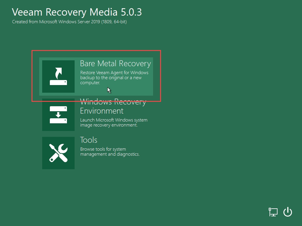 Khởi động VM (POWER ON VM) và chờ để Veeam Recovery Media khởi động.