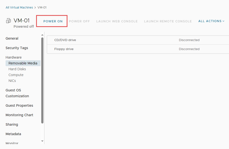 Tắt máy ảo (Shutdown the VM) và gỡ phương tiện (Eject Media).