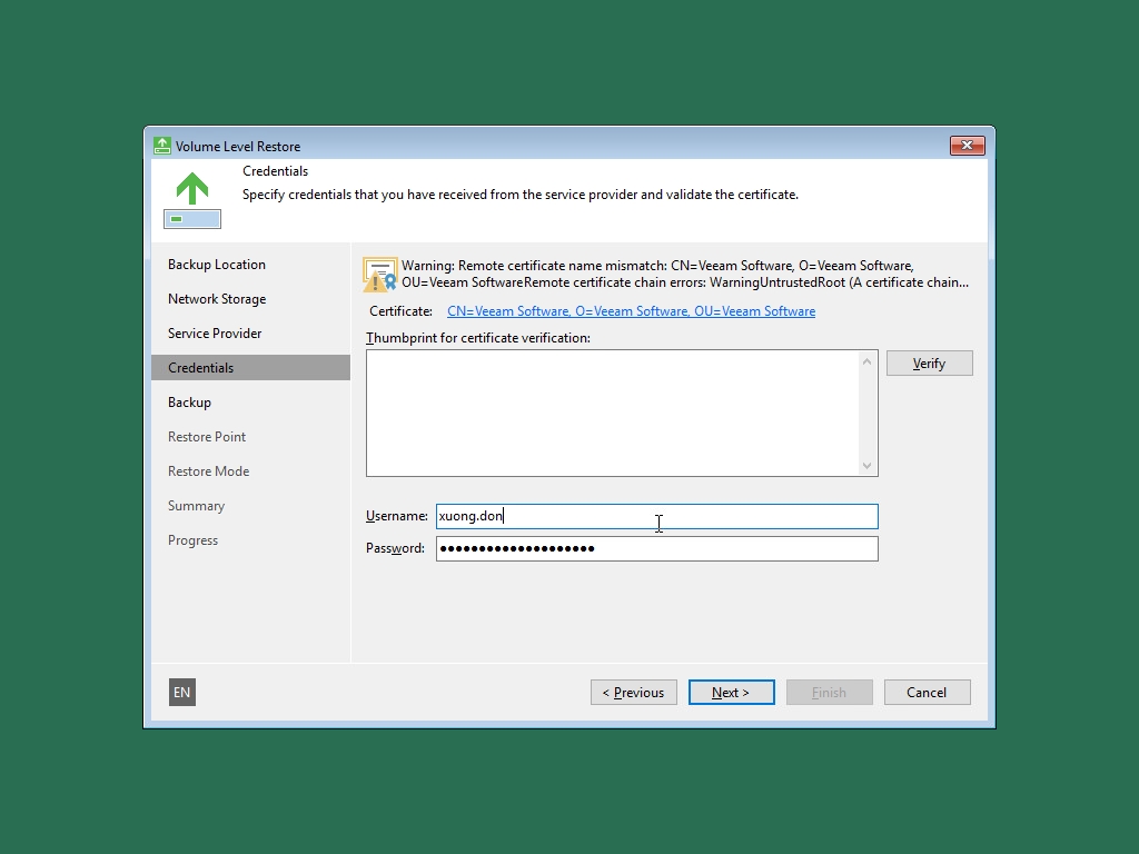 Tài liệu này hướng dẫn cách khôi phục một Windows VM bằng Veeam Recovery Media.