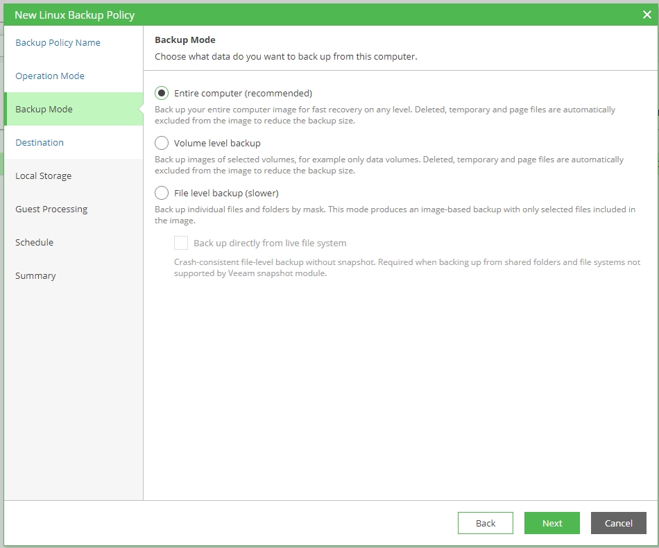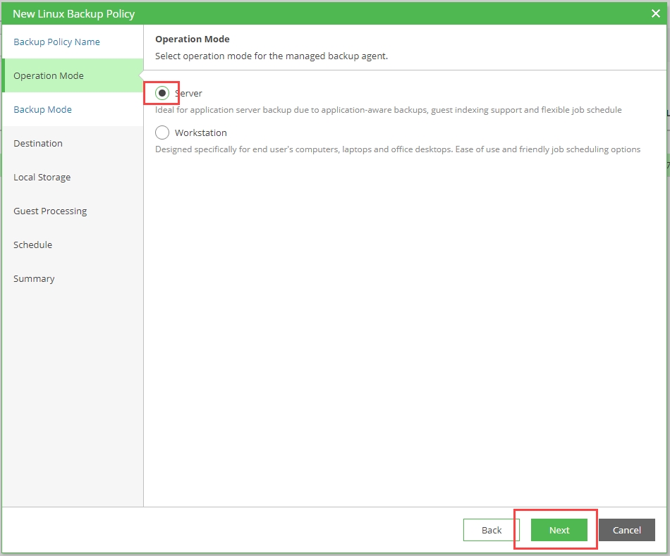 Chọn Backup Mode mà bạn muốn, sau đó nhấn Next