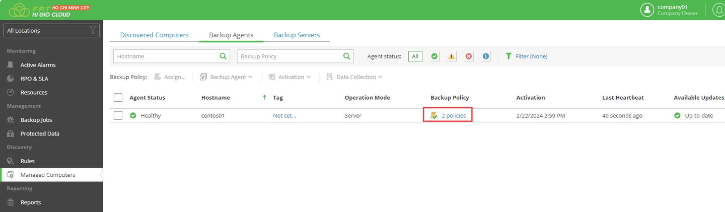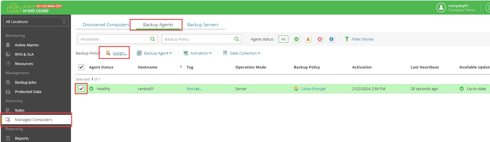 Chọn Managed Computers → Choose Backup Agents tab → Tick Computer muốn tạo job → Chọn Assign…