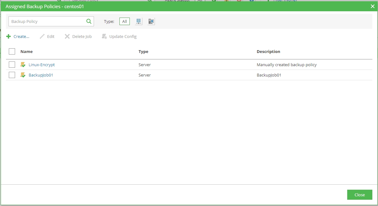 Chọn policy từ cột Backup Policy để kiểm tra quá trình tạo backup job.