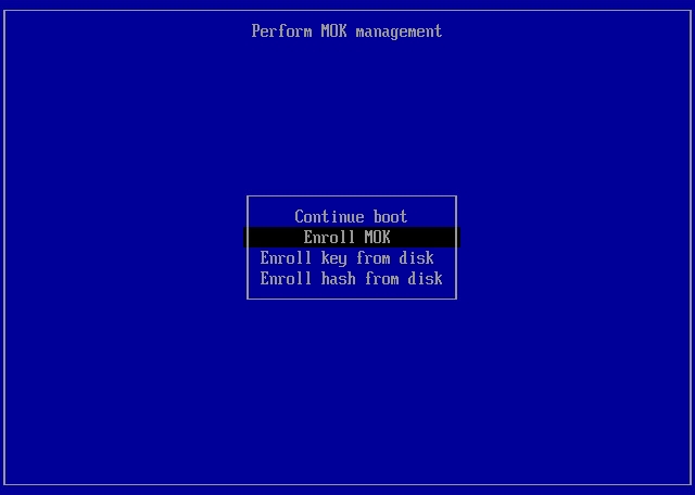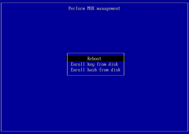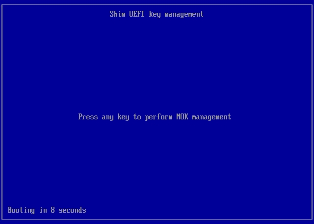 # rebootTrong quá trình khởi động lại, khi được nhắc, nhấn bất kỳ phím nào để thực hiện quản lý MOK.