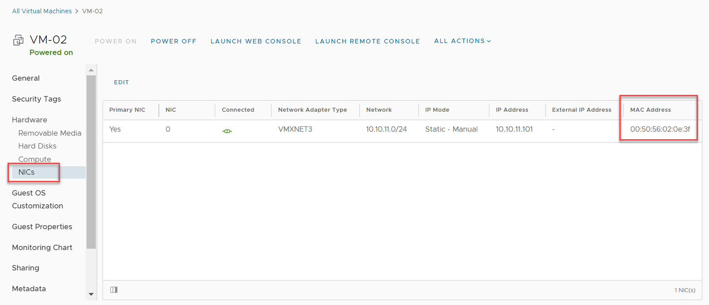 Cách khắc phục: Lấy địa chỉ MAC mà VM đã được gán và cập nhật địa chỉ này vào cấu hình giao diện mạng (network interface).