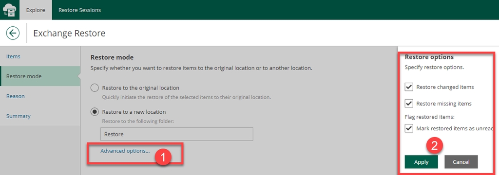 Mark restored items as unread. Chọn nếu bạn muốn đánh dấu các mục đã restore là chưa đọc.