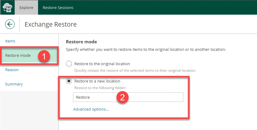 Bước 5: Tại bước Restore mode, chọn nơi bạn muốn restore các mục đã chọn: