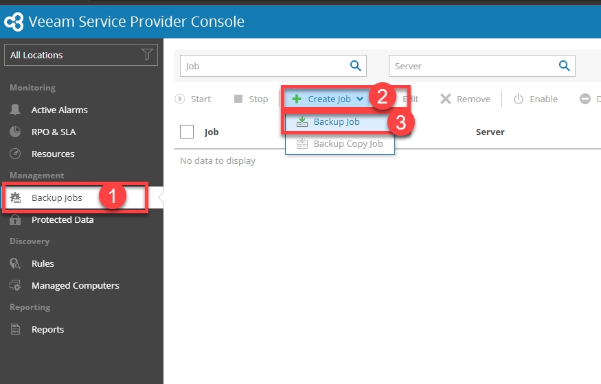 Ở đầu danh sách công việc, nhấn Create Job và chọn Backup Job.
