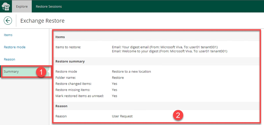 Kết quả: Các mục được restore sẽ được đưa vào thư mục Restore mà bạn đã chọn và được đánh dấu là chưa đọc.