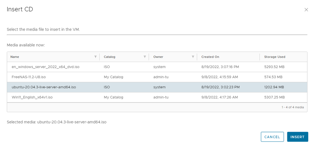 **Bước 13**: Chọn tệp ISO bạn muốn gắn từ danh mục trong hộp thoại **Insert CD**, sau đó nhấp **Insert**.