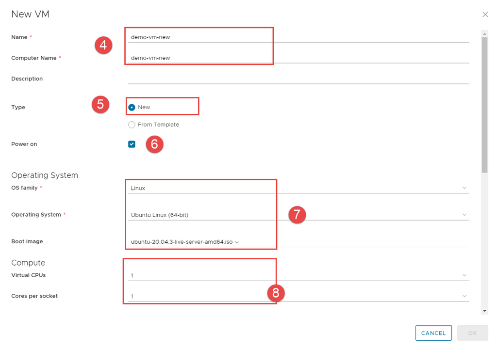 Ngoài việc triển khai các máy ảo (VM) dựng sẵn từ một template, bạn cũng có thể tự tạo máy ảo từ đầu, giống như trên một máy vật lý, bằng cách sử dụng tệp ISO thay vì đĩa CD hoặc DVD vật lý.