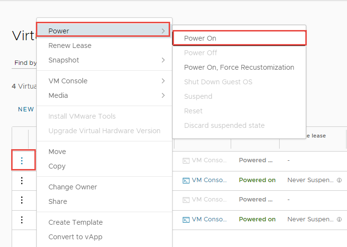 **Bước 14**: Nhấp vào ba dấu chấm dọc >> **Power >> Power On**.