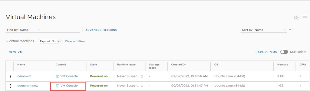 Bước 1: Trên màn hình bảng điều khiển Virtual Data Center, nhấp vào thẻ của trung tâm dữ liệu (TTDL) ảo mà bạn muốn truy cập, và từ bảng bên trái, chọn Virtual Machines.