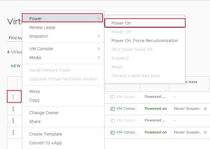 Bước 14: Nhấp vào ba dấu chấm dọc >> Power >> Power On.