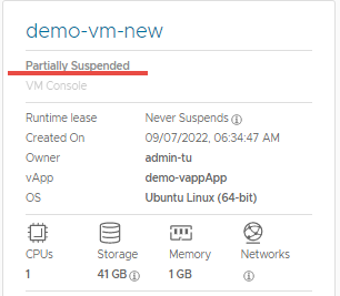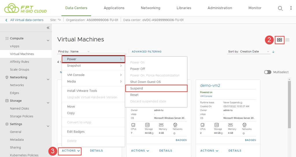 Bước 3: Trong thẻ của máy ảo mà bạn muốn tạm dừng, nhấp vào ACTIONS > Power > Suspend.