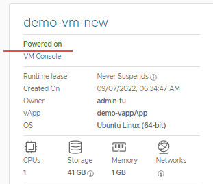 Máy ảo đã bật sẽ hiển thị trạng thái Powered-on màu xanh lá.