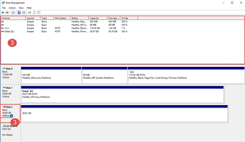 Vui lòng đăng nhập vào Windows OS và xác nhận rằng ổ đĩa đã được loại bỏ. Không có trạng thái offline của ổ đĩa hiển thị trong Disk Management.
