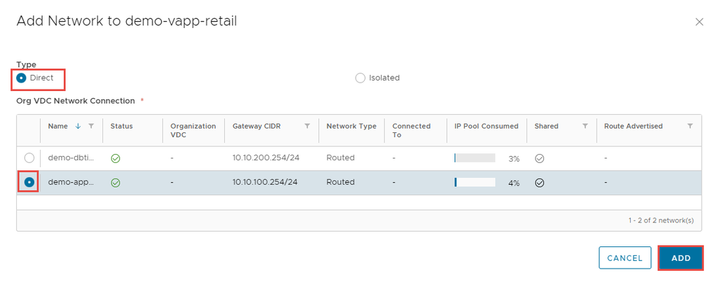 Bạn có thể thêm một network vào vApp để làm cho mạng này có sẵn cho các máy ảo trong vApp. Bạn có thể thêm virtual data center network vào vApp.