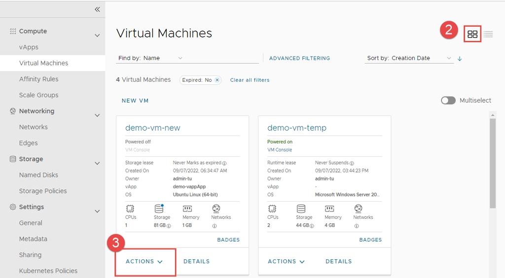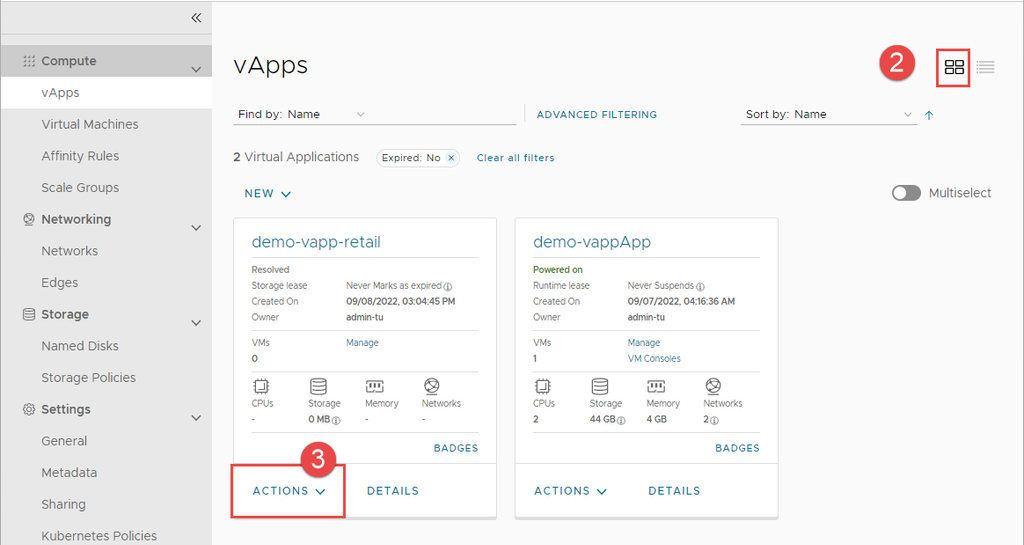 Bước 2: Trên trang vApps, chọn Card View để xem vApp dưới dạng thẻ.