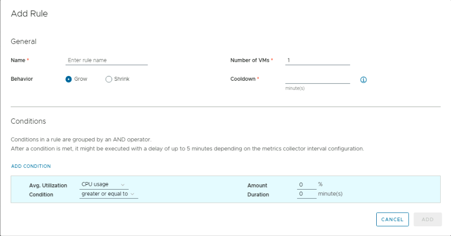 Lưu ý: Các điều kiện không thể kích hoạt lần mở rộng khác cho đến khi hết thời gian chờ. Thời gian chờ sẽ được đặt lại khi bất kỳ quy tắc nào trong nhóm scale được kích hoạt.