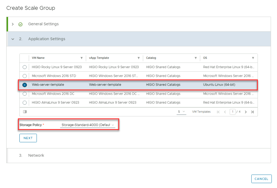 Chọn mẫu vApp template của ứng dụng đã chuẩn bị từ trước.
