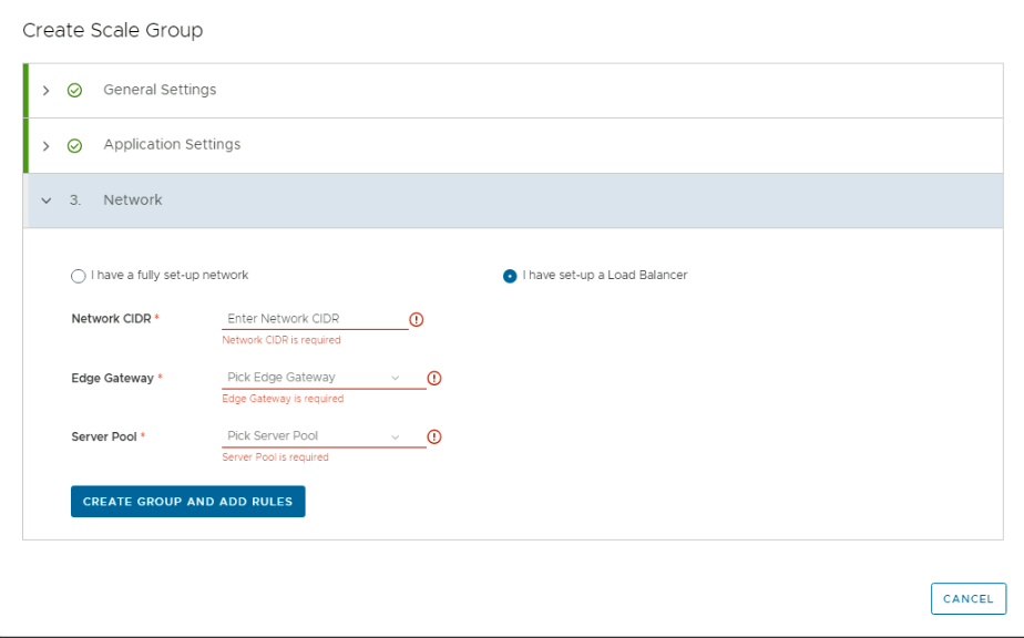 Nếu bạn tự quản lý Load Balancer hoặc không cần Load Balancer, chọn I have a fully set-up network:
