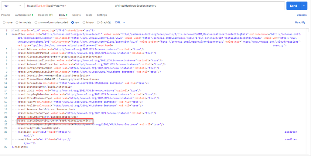 * PUT https\://{{vcd\_url}}/api/vApp/{{vm-uuid}}/virtualHardwareSection/memory