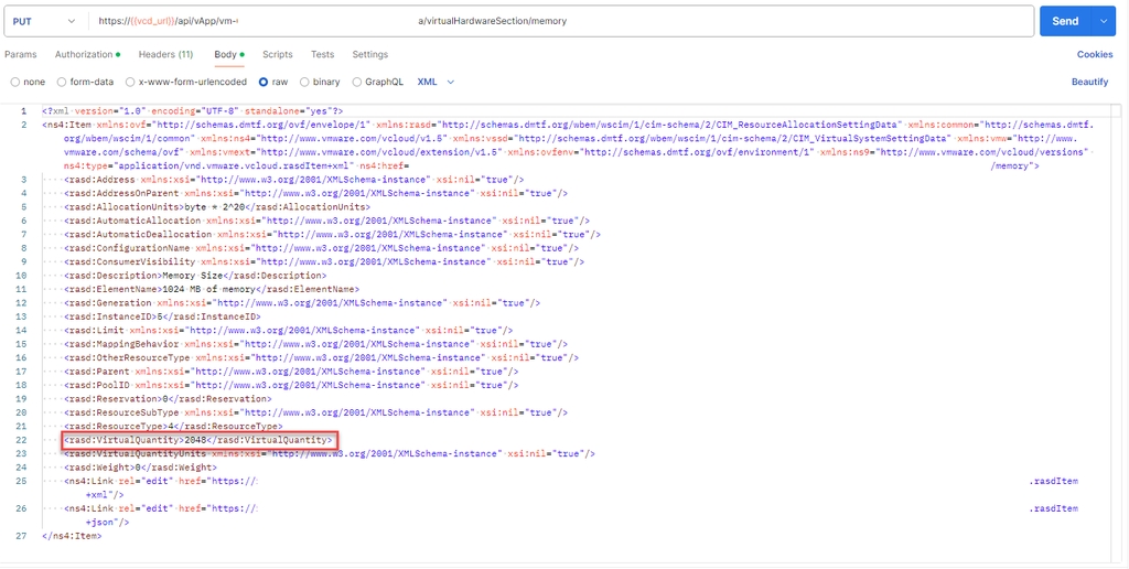 PUT https://{{vcd_url}}/api/vApp/{{vm-uuid}}/virtualHardwareSection/memory