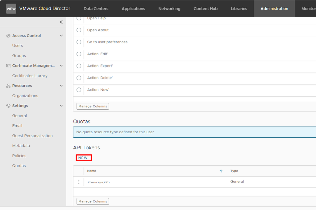 Đăng nhập vào IAM portal -> vCD portal -> User preferences