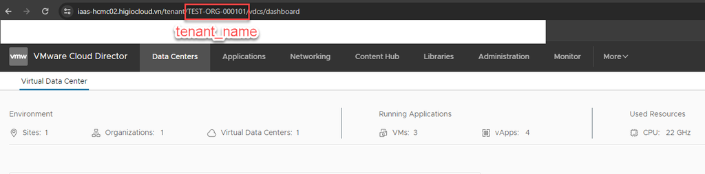 Ex: https://iaas-hcmc02.higiocloud.vn/tenant/”tenant_name”/vdcs/dashboard
