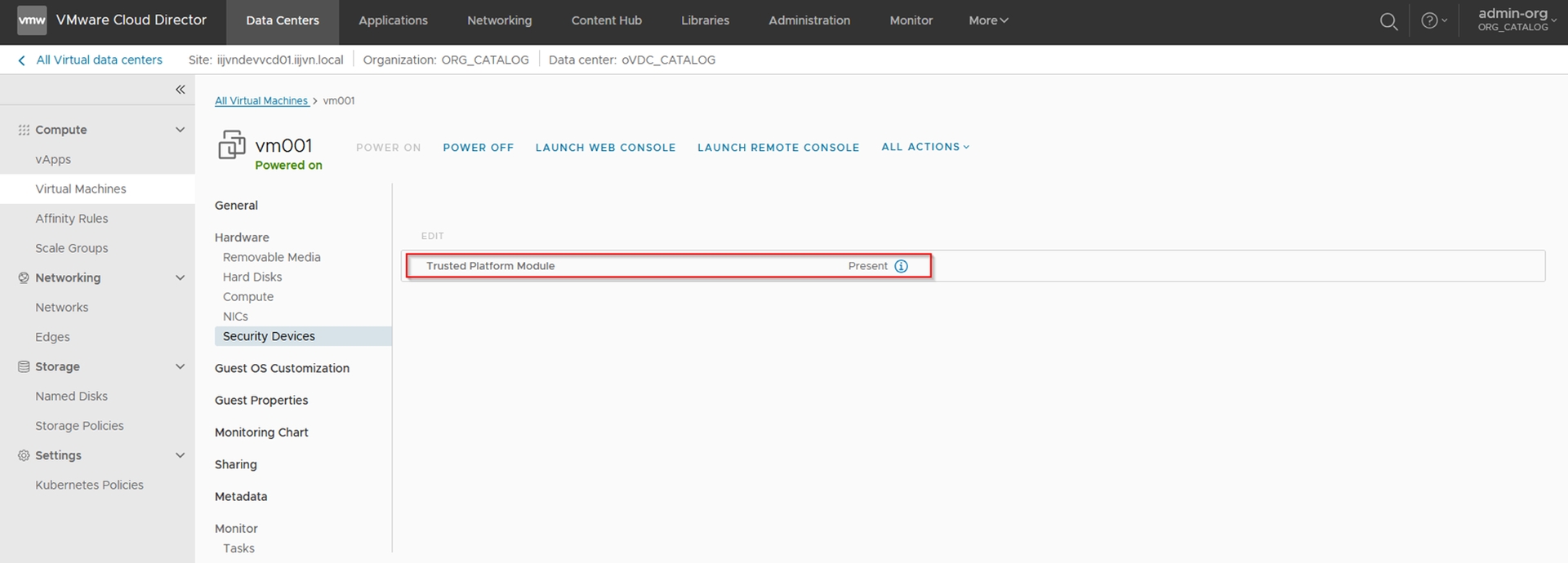 LƯU Ý: VM phải đáp ứng các yêu cầu sau để thêm Trusted Platform Module: