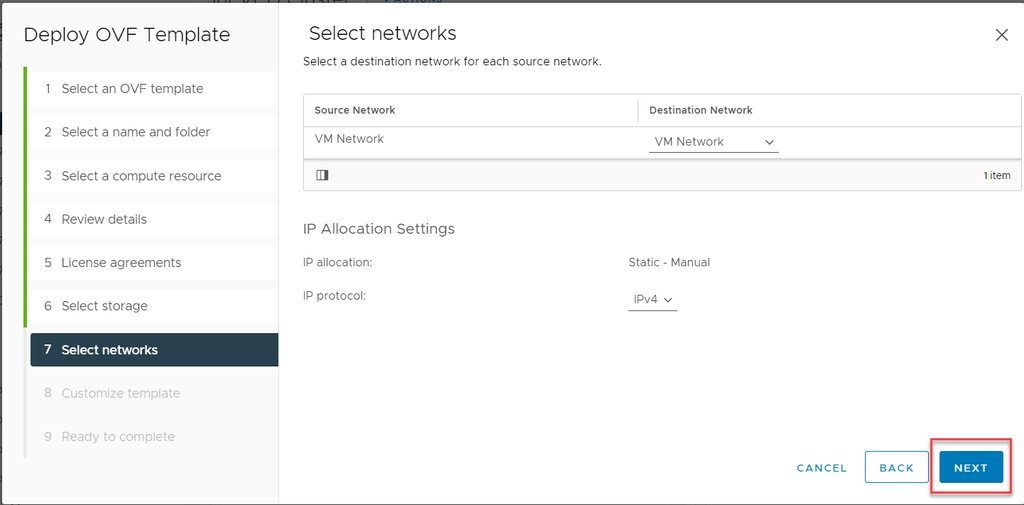 - Select an OVF template. Cài đặt từ local file. Duyệt đến vị trí của tệp OVA đã tải xuống. Chọn tệp OVA của vCDA và nhấn Next.