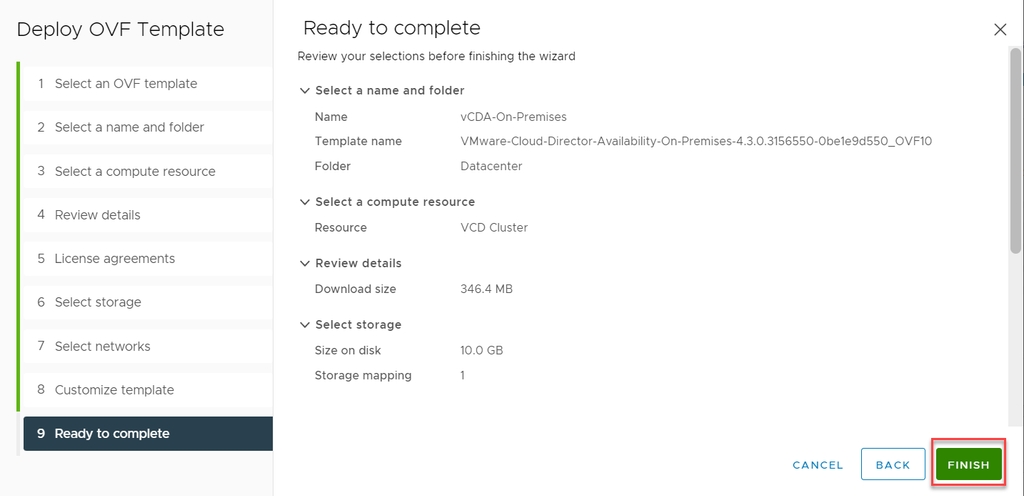 - Quy trình triển khai tenant giống như tất cả các triển khai OVF điển hình của VMware. Tenant cần cài đặt vCloud Availability On-Premises Appliance OVA vào vCenter.