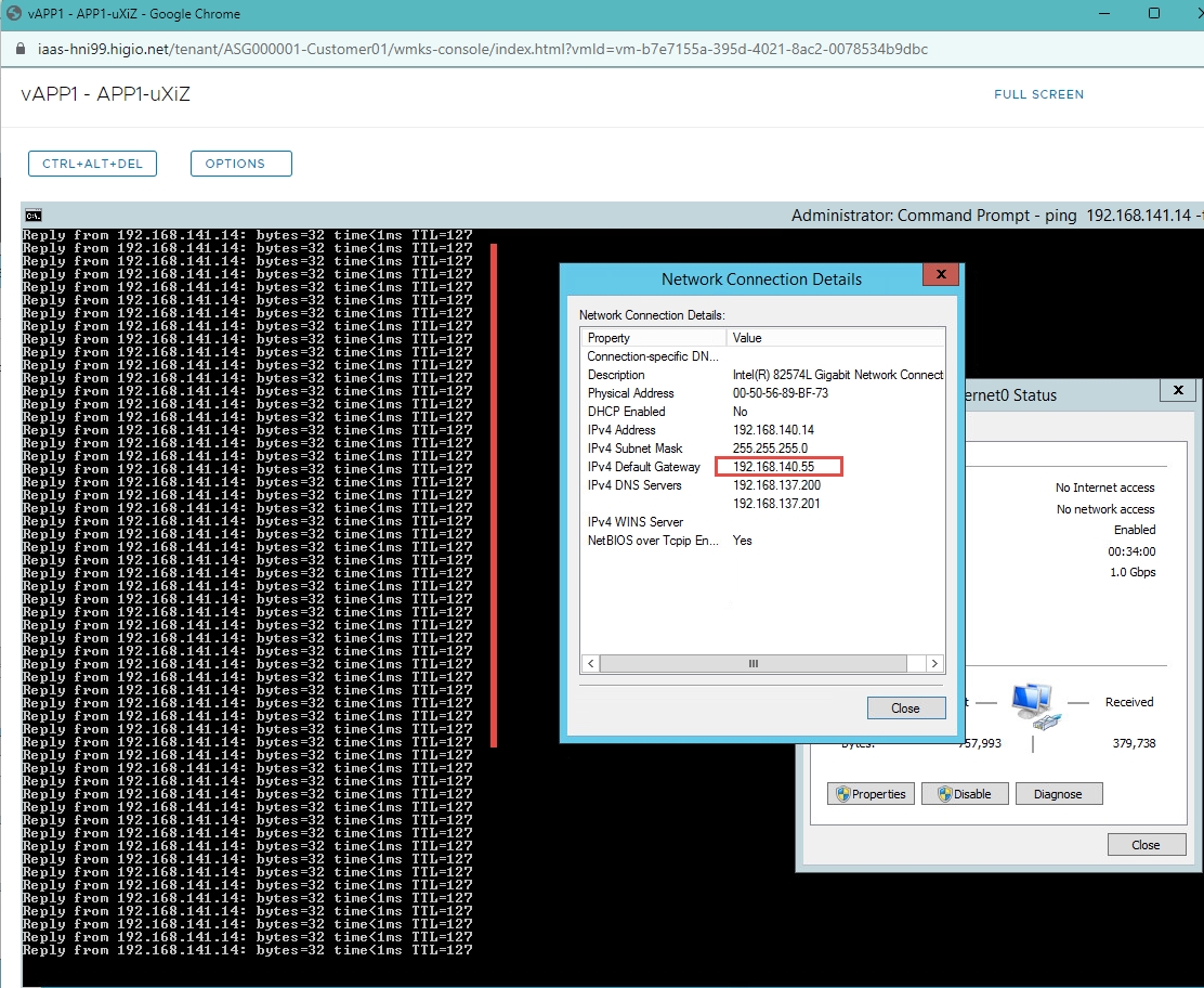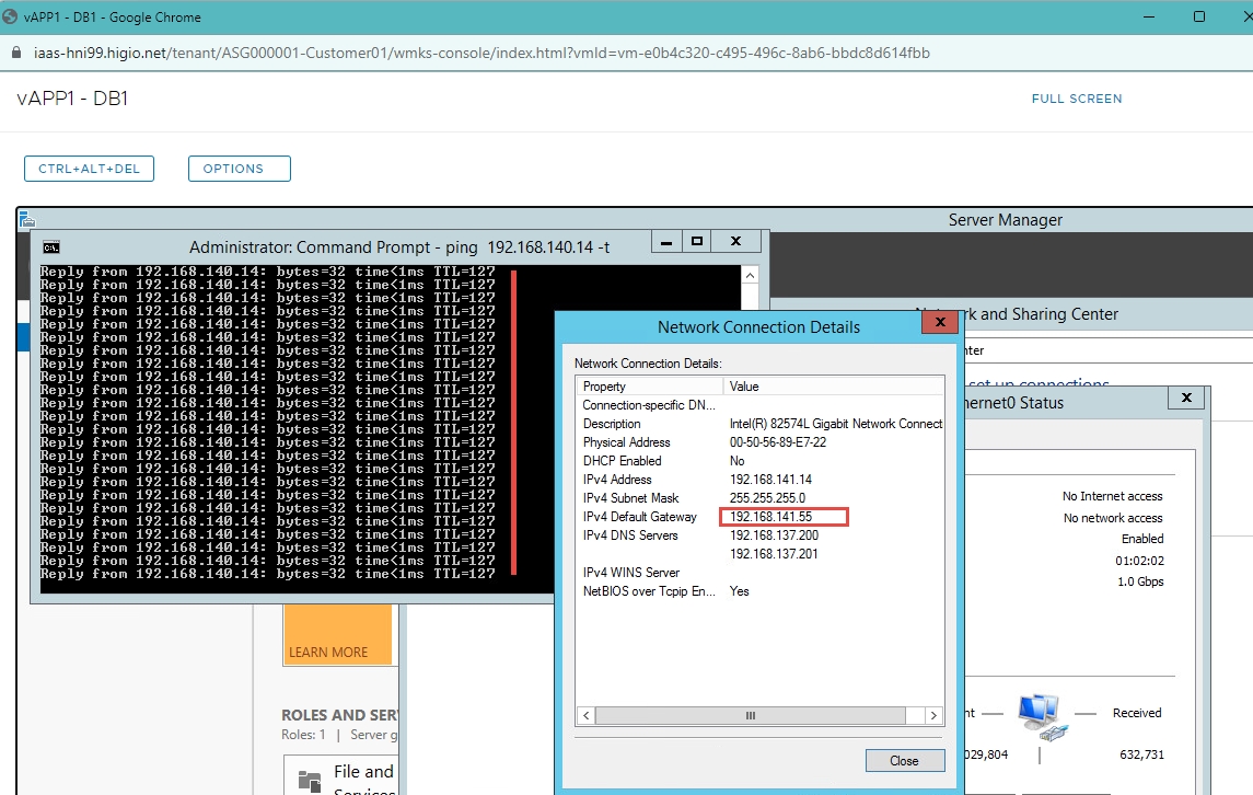 Đăng nhập vào APP1 & DB1 với quyền admin local > thay đổi default gateway và xác nhận rằng APP1 & DB1 có thể truy cập được.