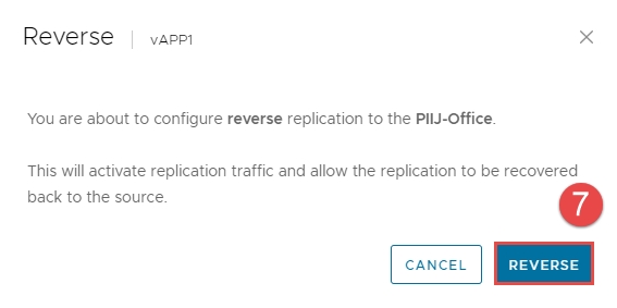 Bước 4: Xác nhận Reverse Replication từ cloud HI GIO về on-prem. Nhấn REVERSE.