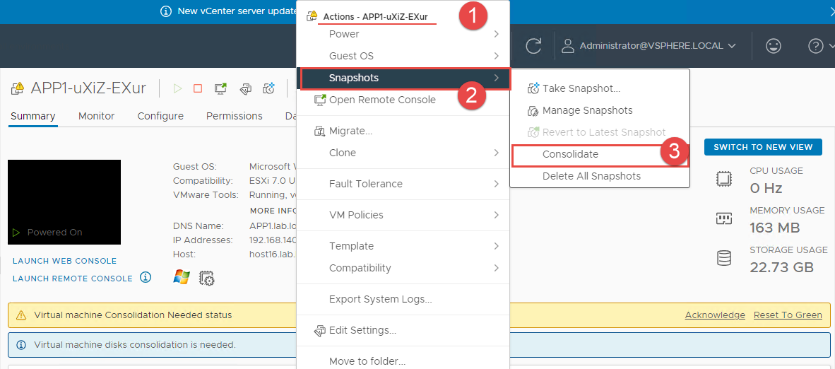 2. <mark style="color:green;">**Yêu cầu Virtual Machine Disk Consolidation**</mark>