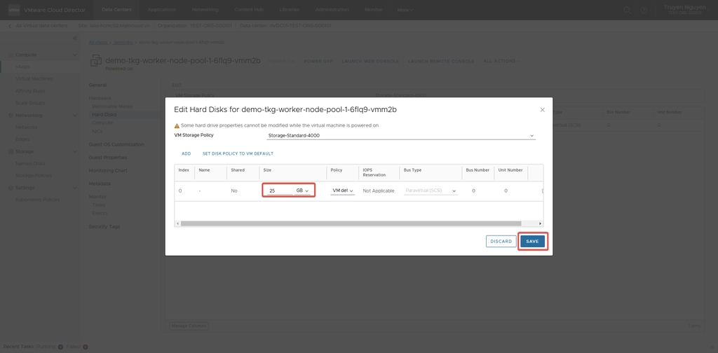 3. Mở rộng dung lượng đĩa cho các node trong Kubernetes Cluster trên HI GIO Portal