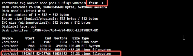 Bước 3: SSH vào node và thực hiện các lệnh dưới đây để mở rộng dung lượng đĩa trên hệ điều hành.