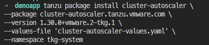 tanzu package install cluster-autoscaler \