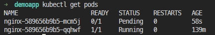 Bạn sẽ thấy một nginx pod mới với trạng thái Pending và các sự kiện hiển thị FailedScheduling