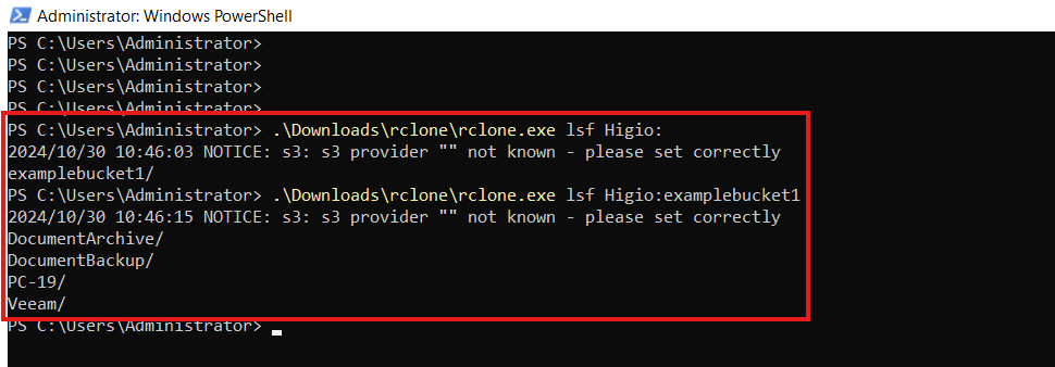 .\Downloads\rclone\rclone.exe lsf Higio:.\Downloads\rclone\rclone.exe lsf Higio:examplebucket1