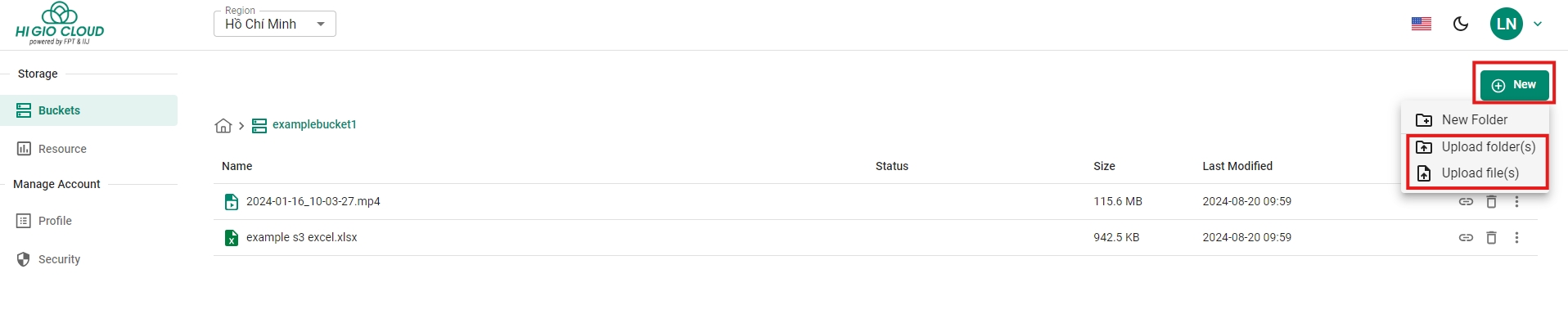 Nhấp vào “New,”sau đó chọn “Upload Folder” hoặc “Upload file(s).” Bạn cũng có thể kéo tệp/thư mục vào đây.