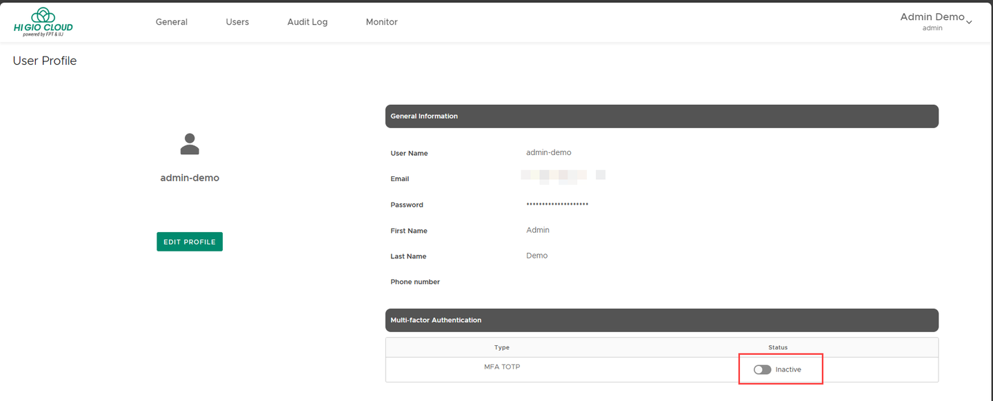 Bạn có thể bật/tắt chức năng MFA TOTP trên cổng IAM. Chúng tôi khuyến nghị sử dụng chức năng MFA để tăng cường bảo mật tài khoản HI GIO của bạn.